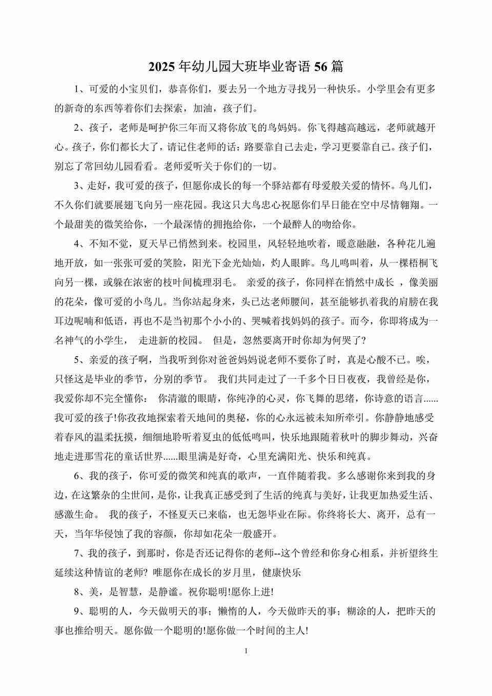 2025年幼儿园大班毕业寄语老师的话56篇