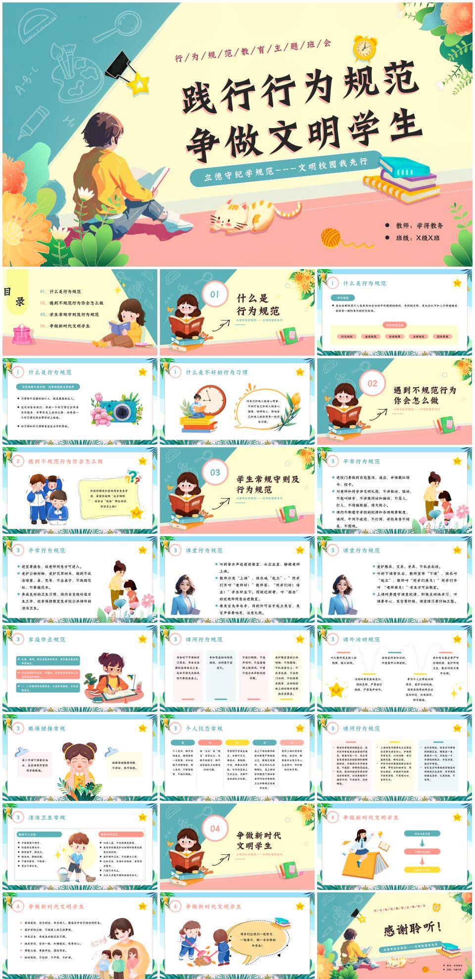 小学生行为规范教育主题班会《践行行为规范,争做文明学生》PPT课件