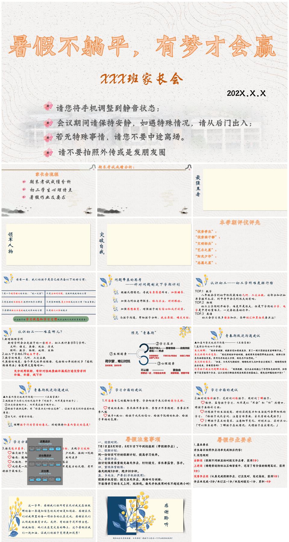 七年级下学期期末家长会《暑假不躺平,有梦才会赢》PPT课件