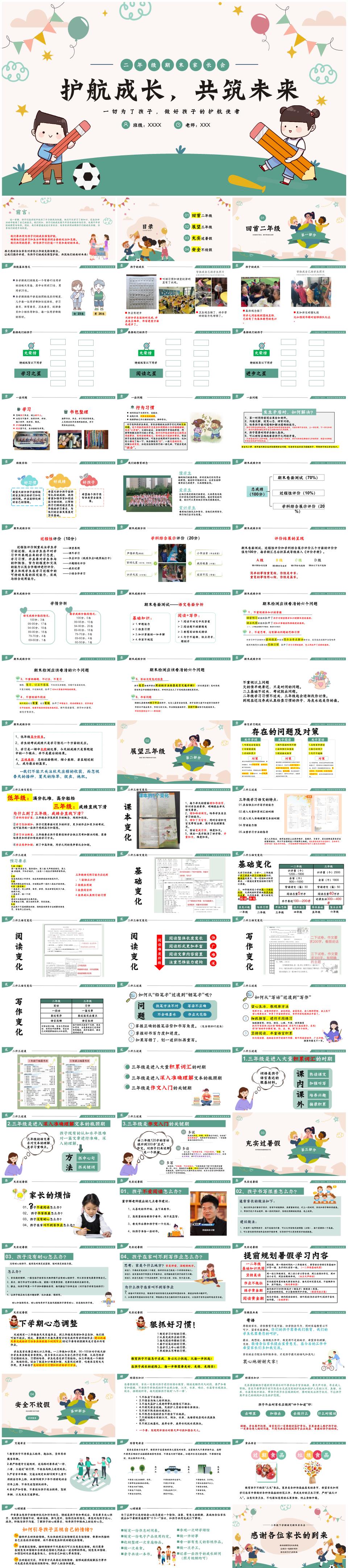 小学二年级下学期语文期末家长会《护航成长,共筑未来》PPT课件(含发言稿)