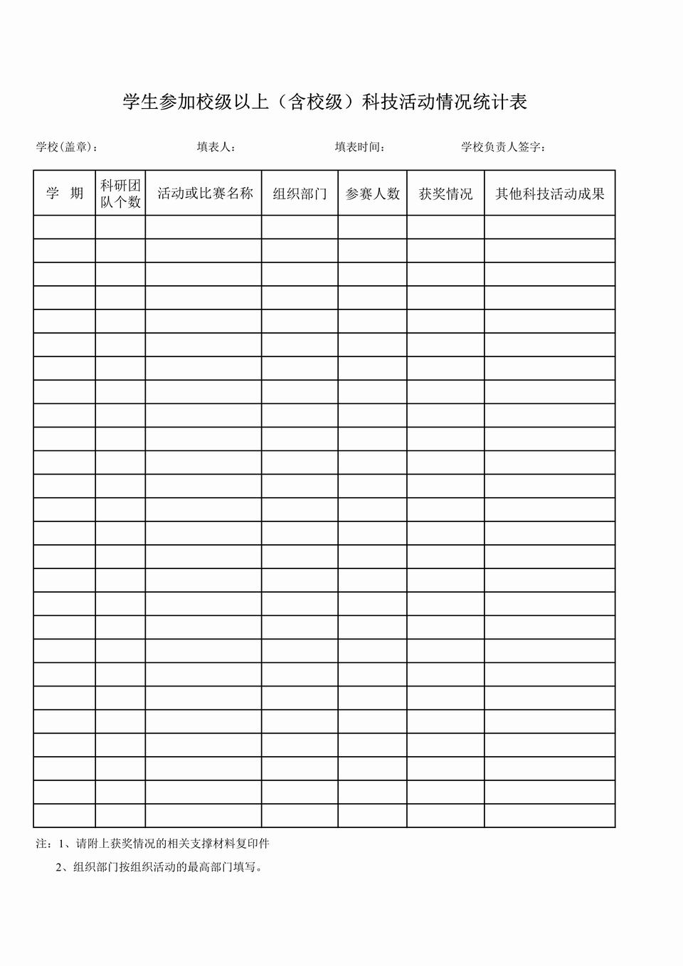 学生参加科技活动情况统计表