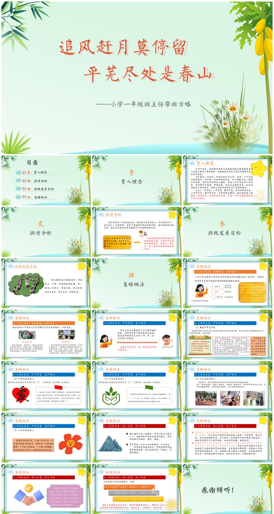 小学一年级班主任带班方略工作经验交流《追星赶月莫停留,平芜尽处是春风》PPT课件(含发言稿)