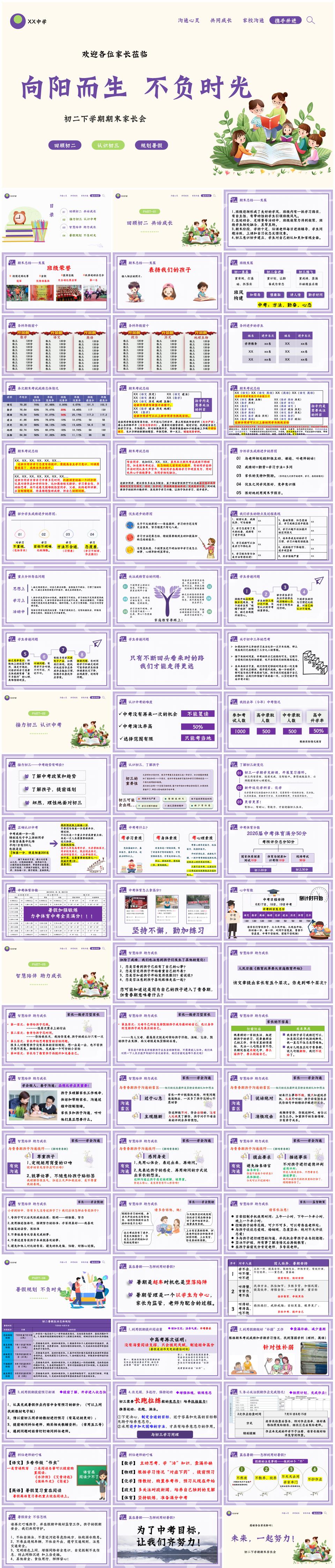 初二八年级下学期第二学期八升九暑假前期末家长会《向阳而生,不负时光》PPT课件(含发言稿)