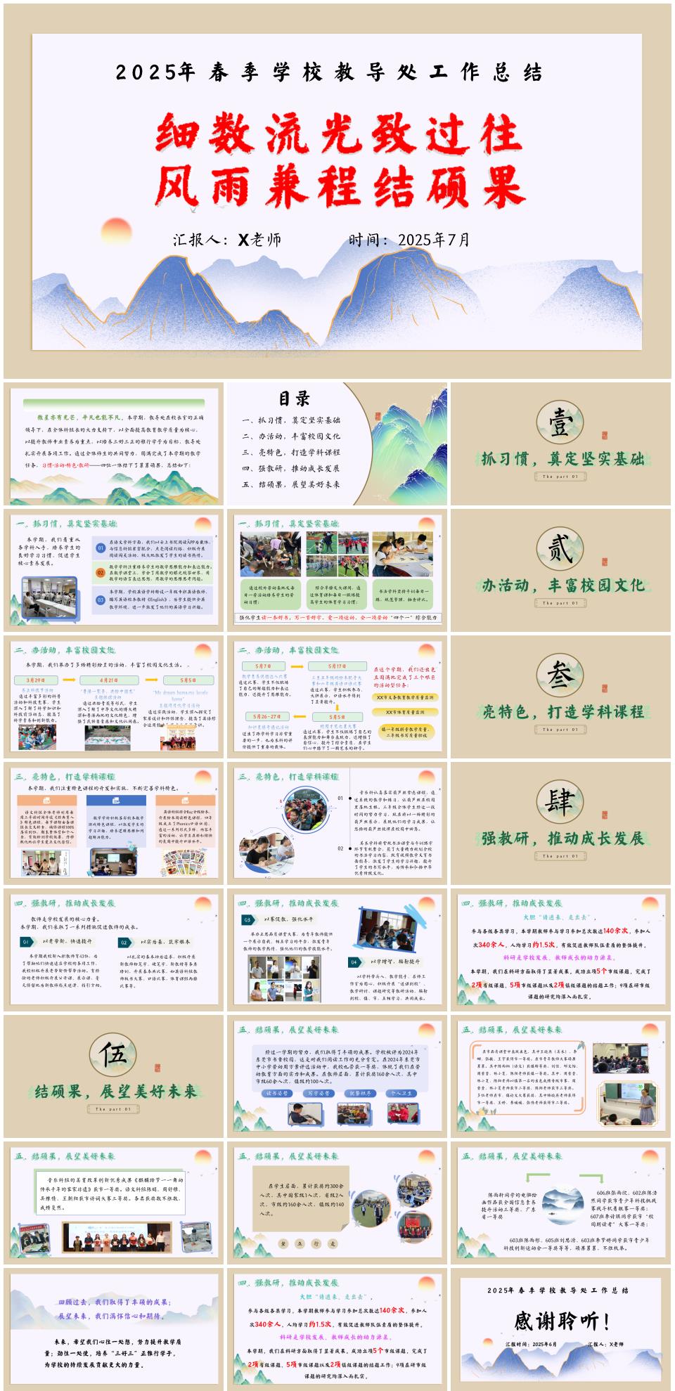 小学春季下学期期末学校教导处工作总结《细数流光致过往,风雨兼程结硕果》PPT(含发言稿)