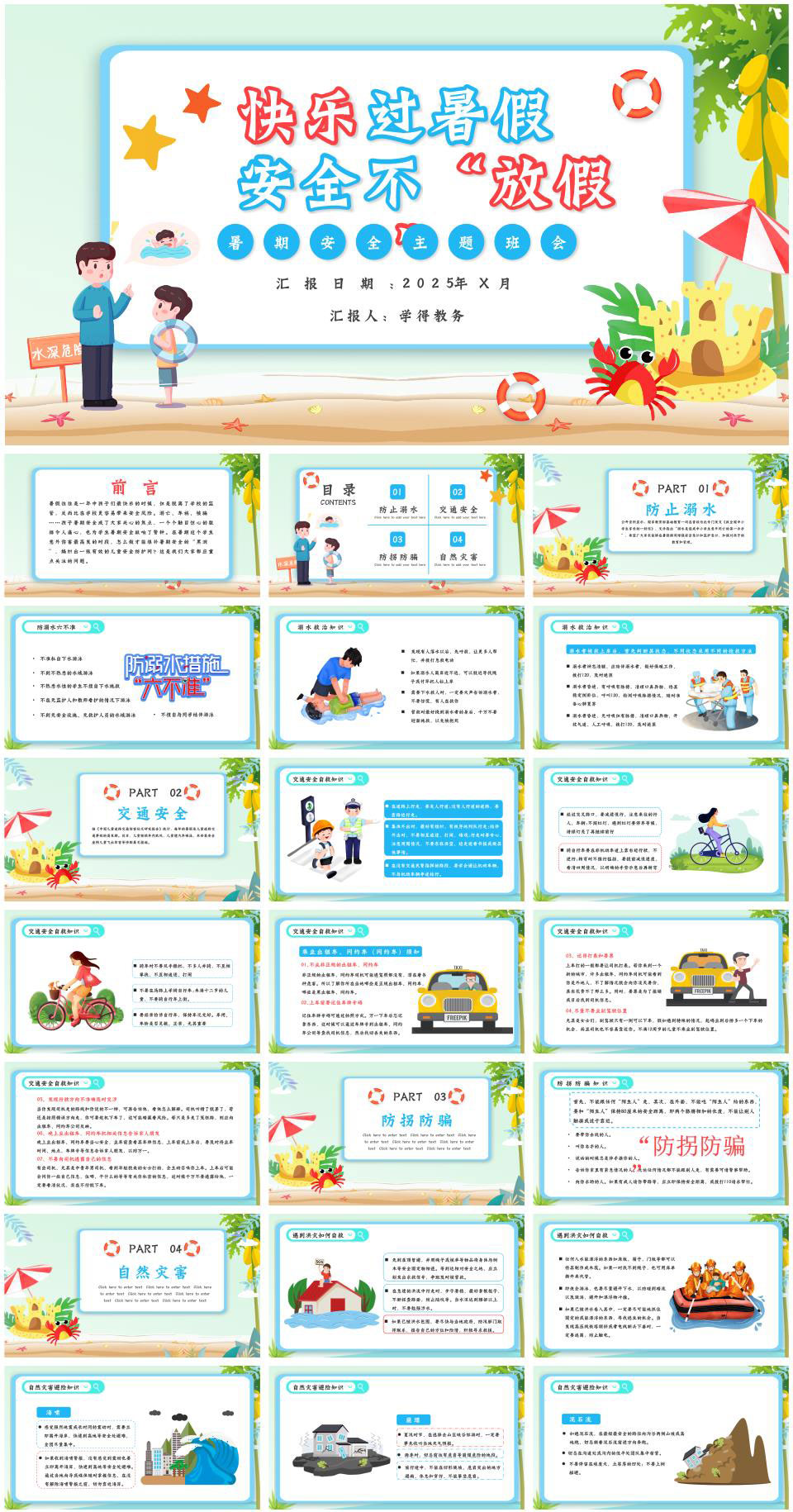 中小学通用暑期假期安全教育主题班会《快乐过暑假,安全不放假》PPT课件