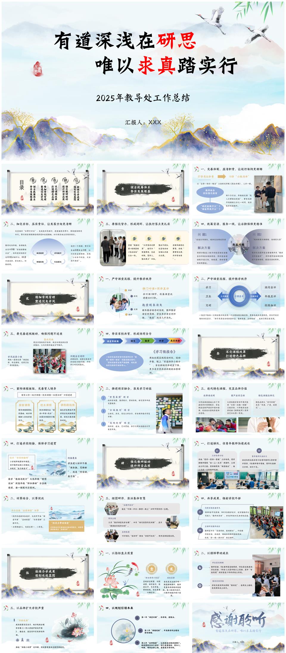 2025年春季小学下学期第二学期学校教导处工作总结《有道深浅在研思,唯以求真踏实行》PPT(含发言稿)