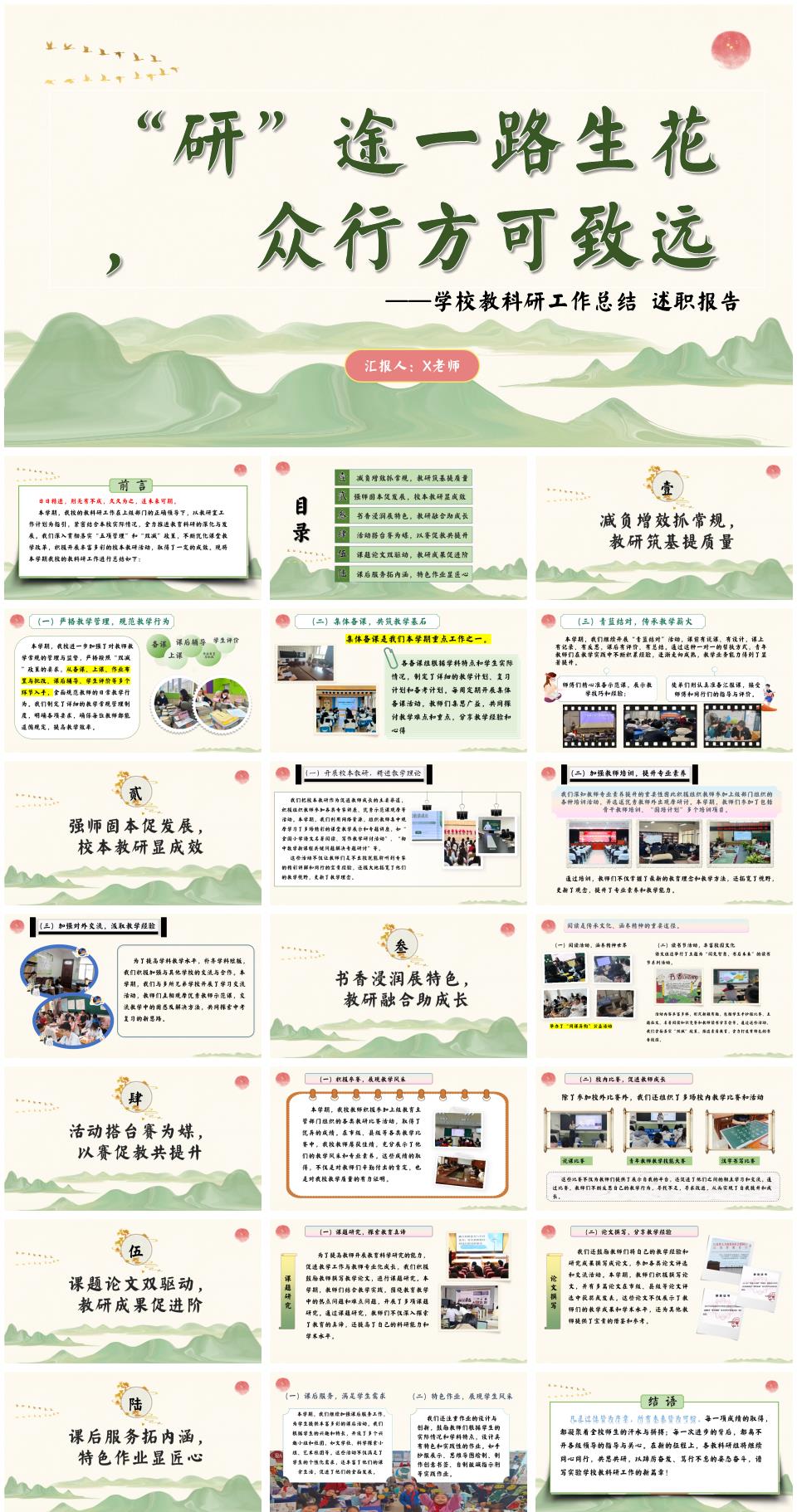 2025年第二学期小学教科研工作总结述职报告《“研”途一路生花,众行方可致远》PPT(含发言稿)