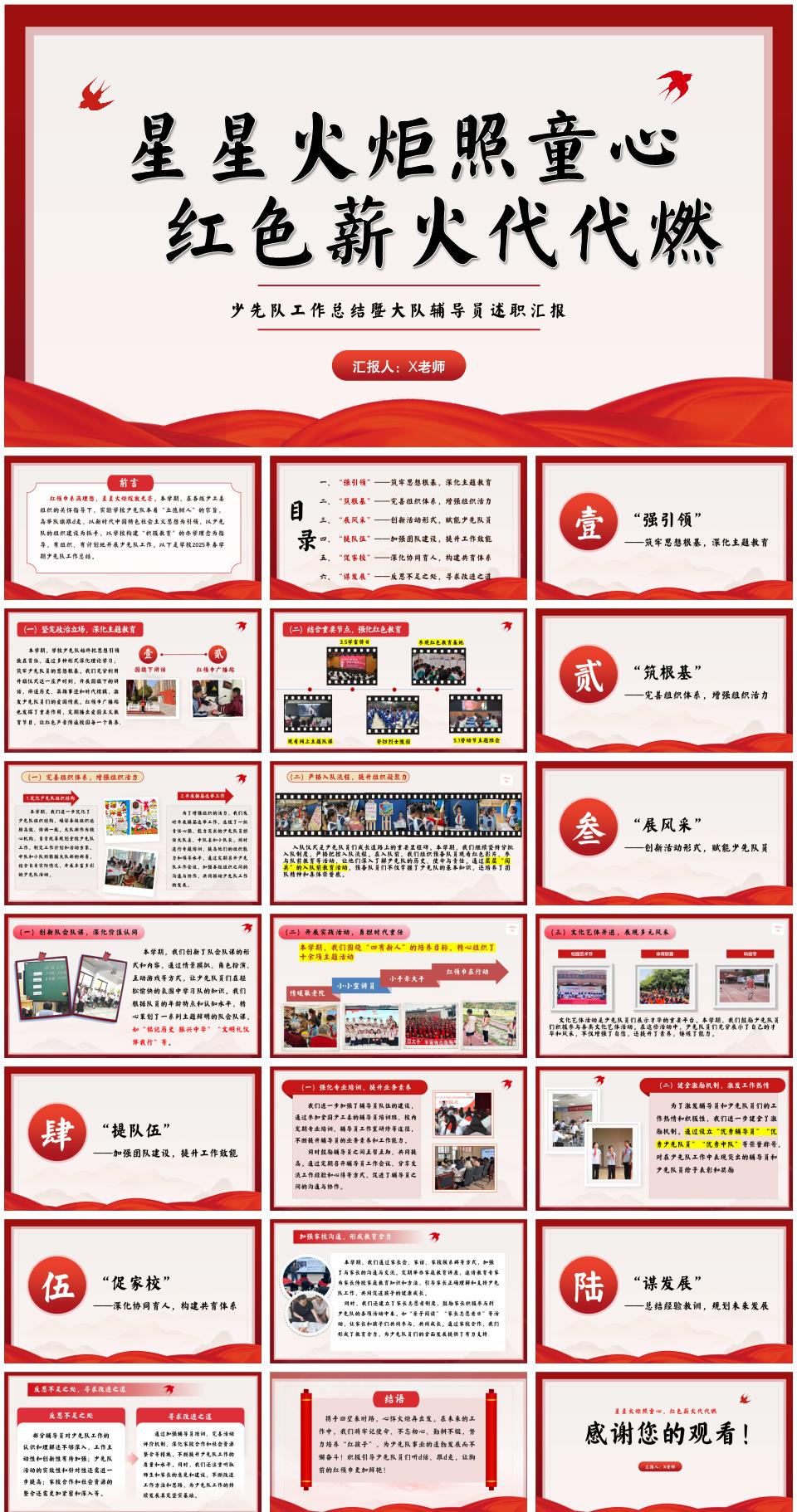 2025年第二学期少先队工作总结暨大队辅导员述职汇报《星星火炬照童心,红色薪火代代燃》PPT