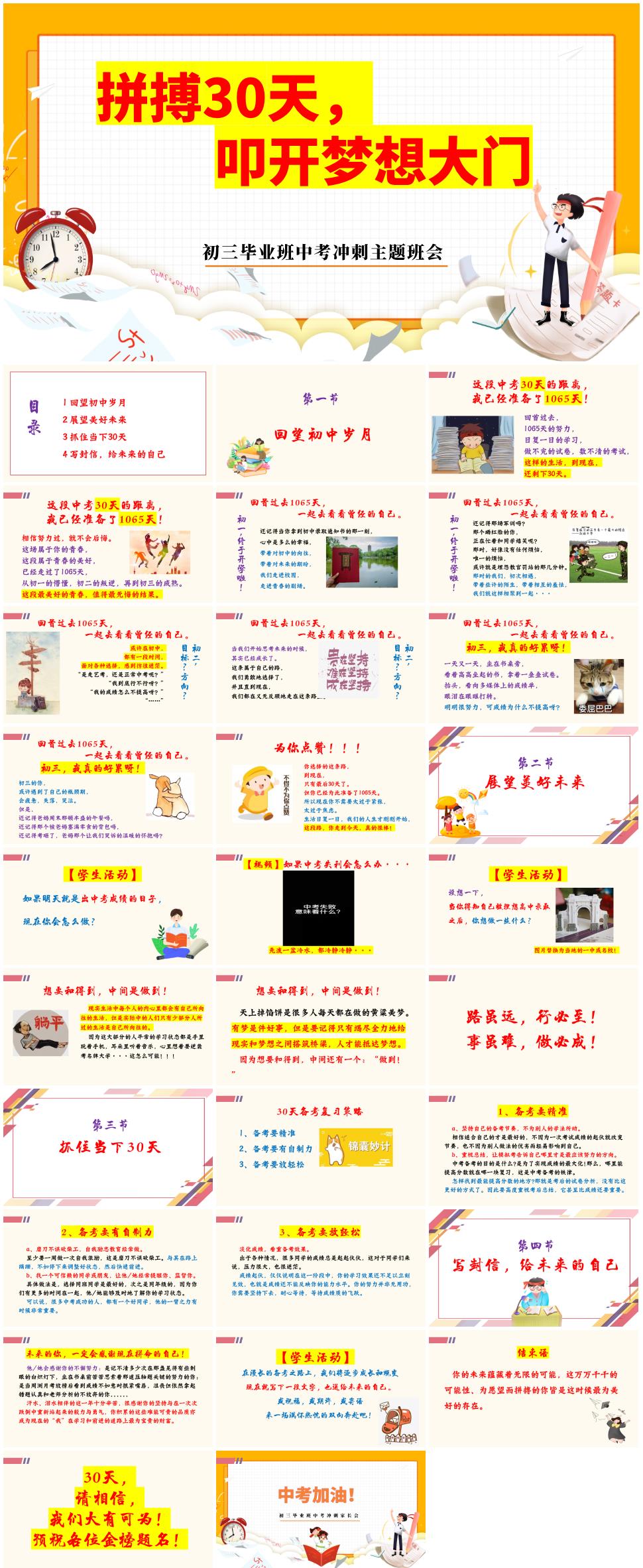 初三毕业班中考冲刺主题班会《拼搏30天,叩开梦想的大门》PPT课件