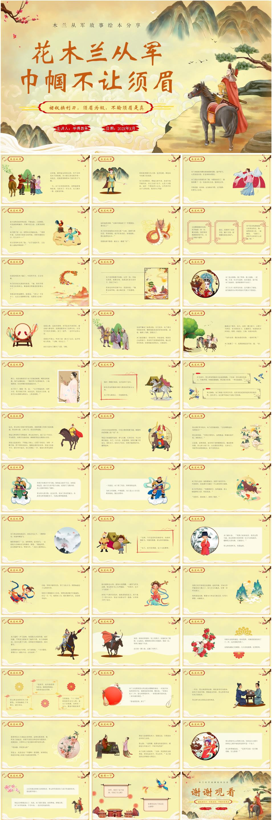 木兰从军故事绘本分享读书分享《花木兰从军,巾帼不让须眉》PPT