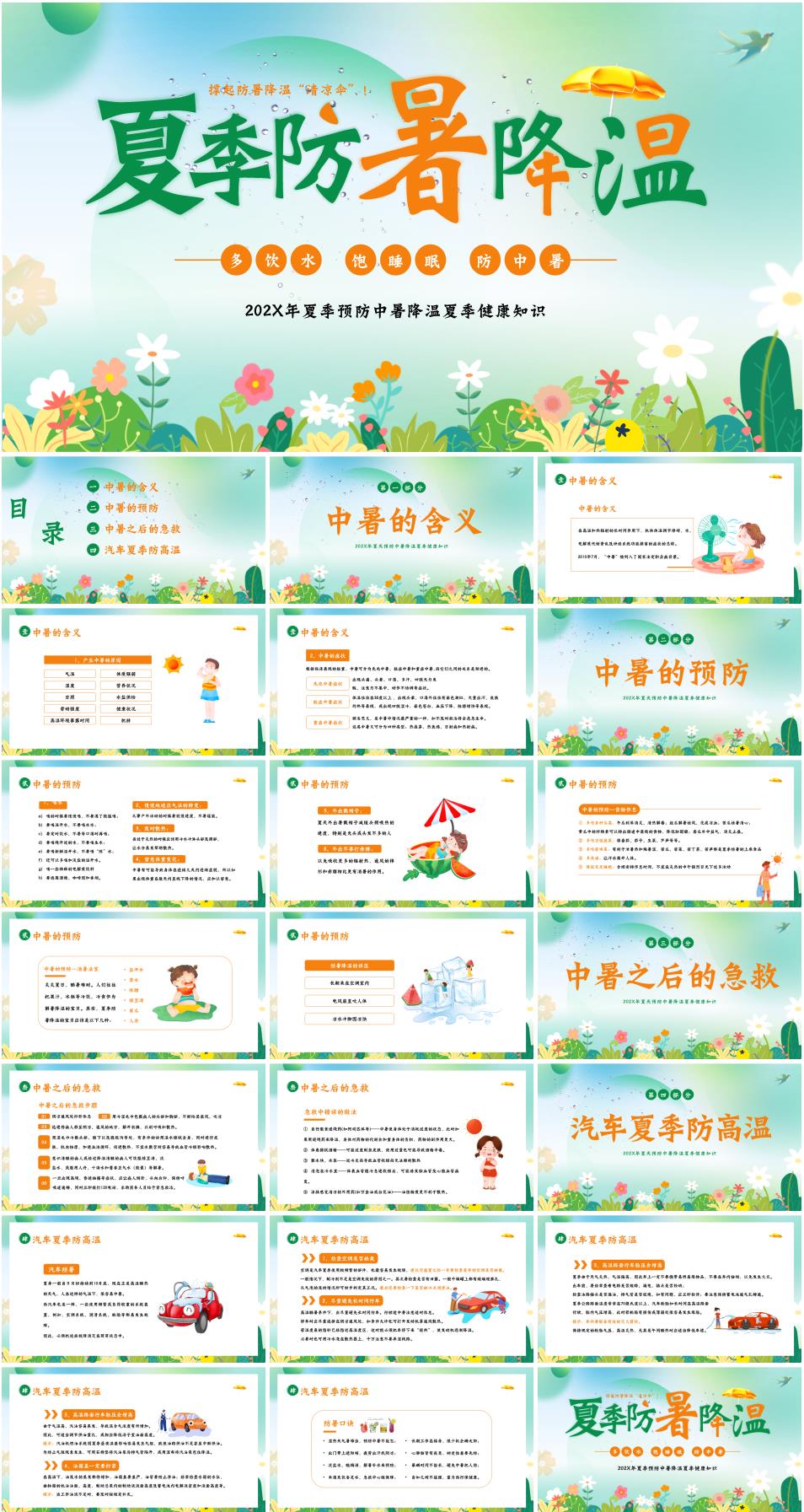 夏季防中暑降温健康知识夏季防暑安全培训暑假安全主题班会《撑起防暑降温“清凉伞”》PPT课件