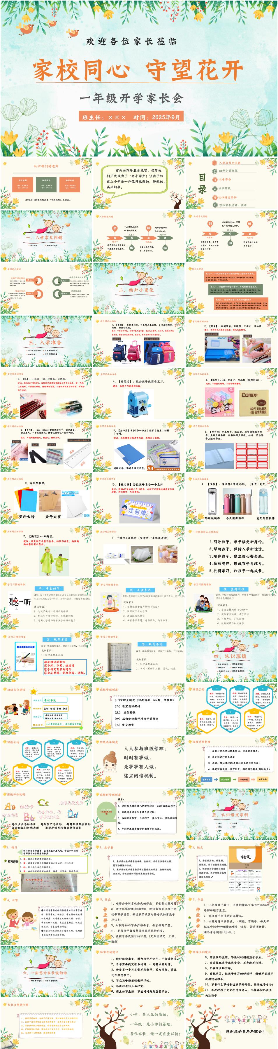 一年级秋季上学期开学家长会语文开学第一课《家校同心,守望花开》PPT课件(含发言稿)