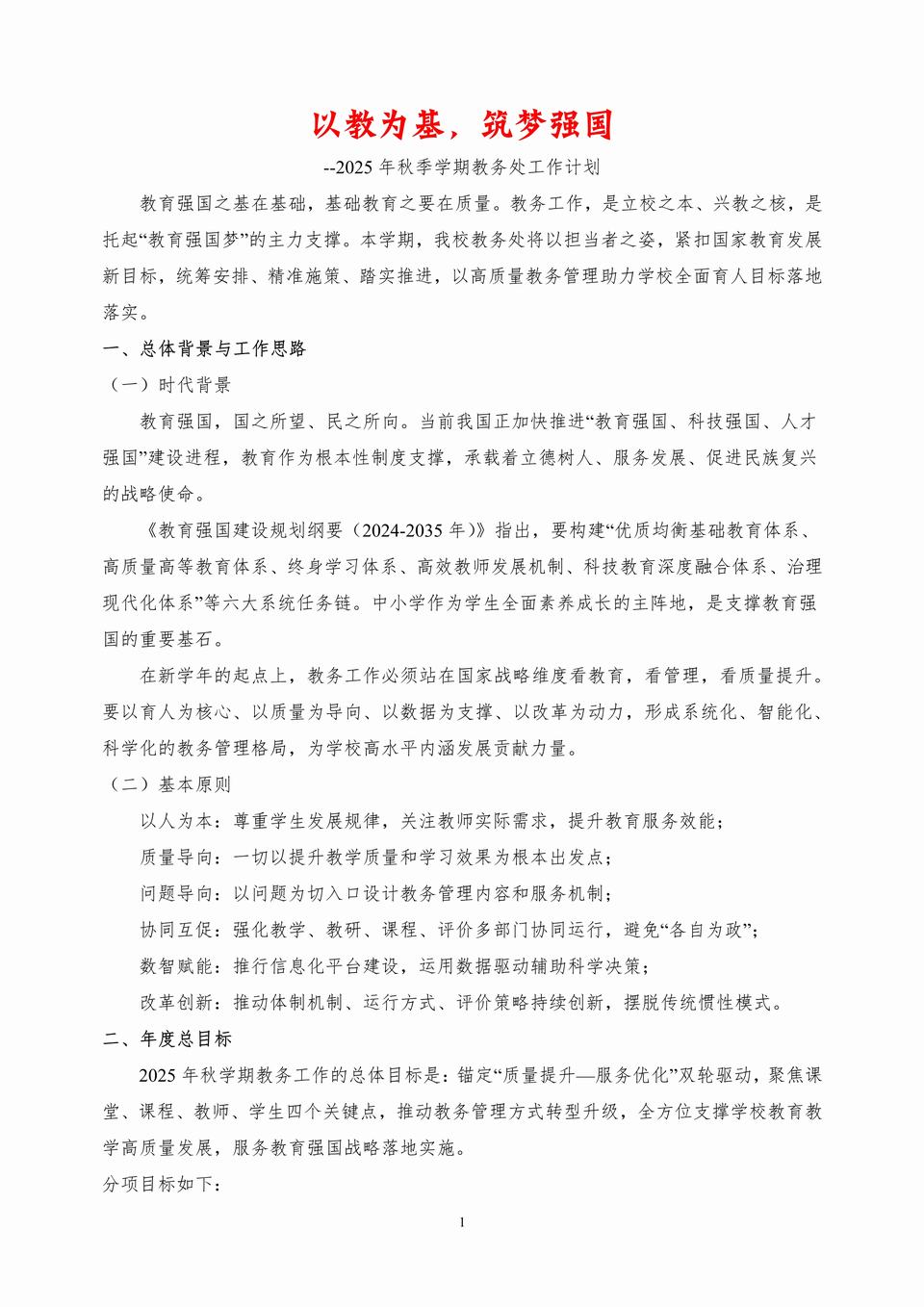 2025年秋季学期教务处工作计划《以教为基,筑梦强国》