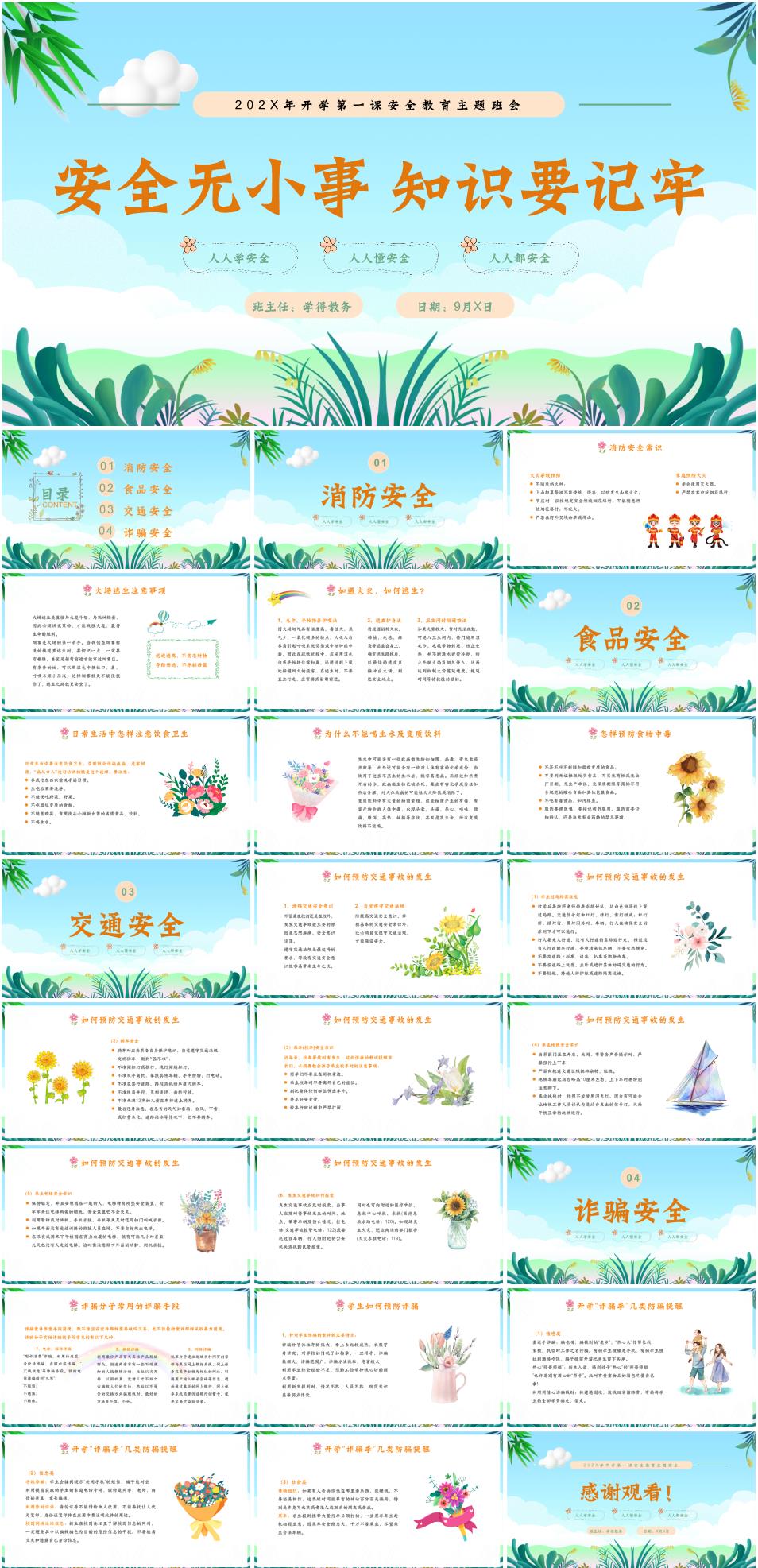 2025年秋季小学开学第一课安全教育主题班会《安全无小事,知识要记牢》PPT课件