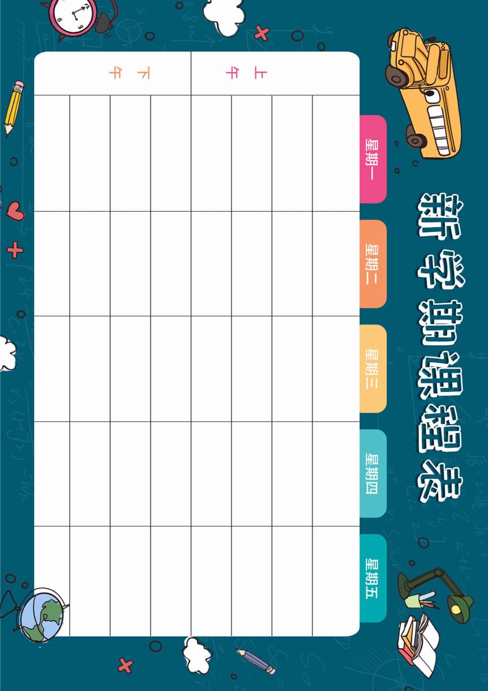 小学通用新学期空白课程表