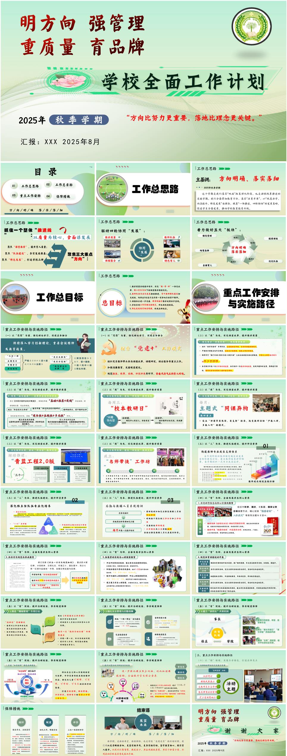 2025年秋季第一学期学校全面工作计划《明方向,强管理,重质量,育品牌》PPT