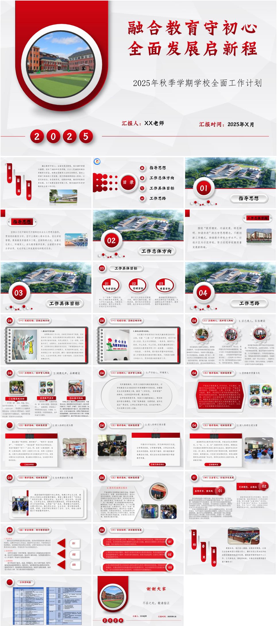 2025年秋季第一学期小学学校全面工作计划《融合教育守初心,全面发展启新程》PPT(含发言稿)