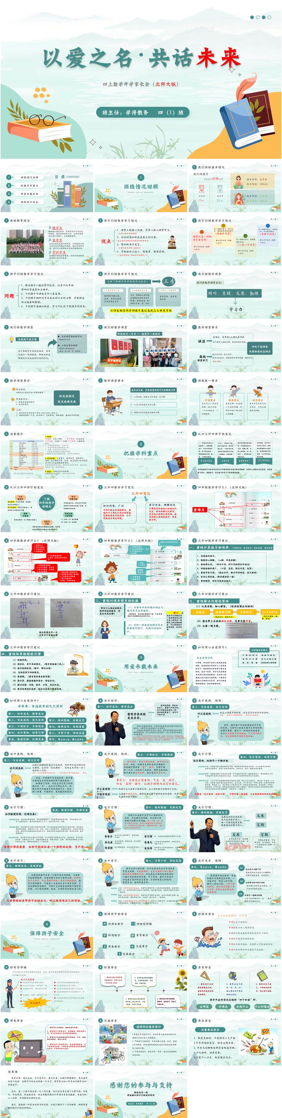 四年级秋季上学期北师大版数学开学家长会《以爱之名,共话成长》PPT课件(含发言稿)