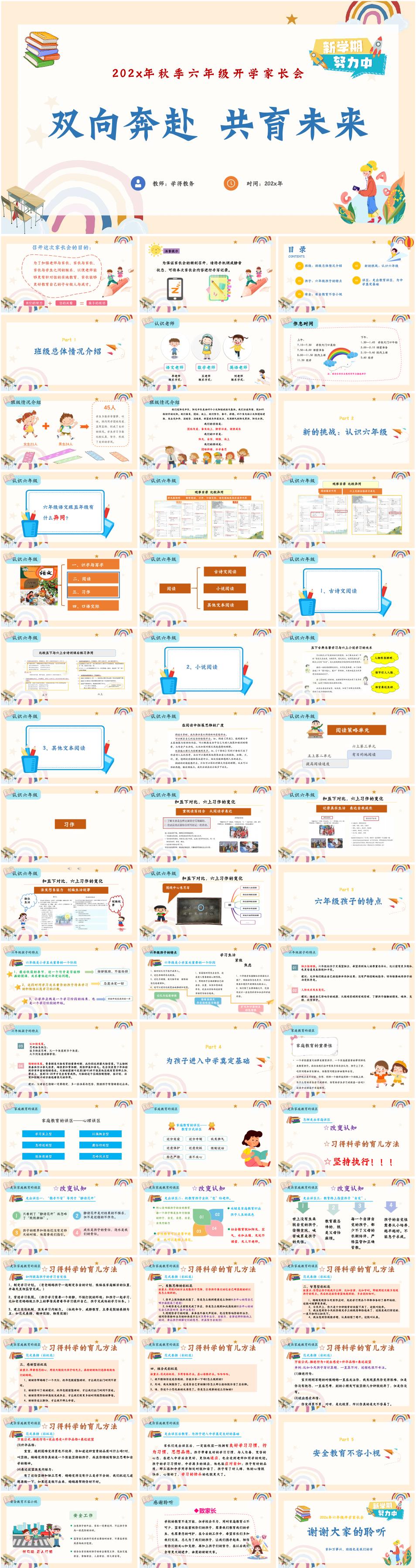 六年级秋季上学期开学家长会《双向奔赴,共育未来》PPT课件(含发言稿)