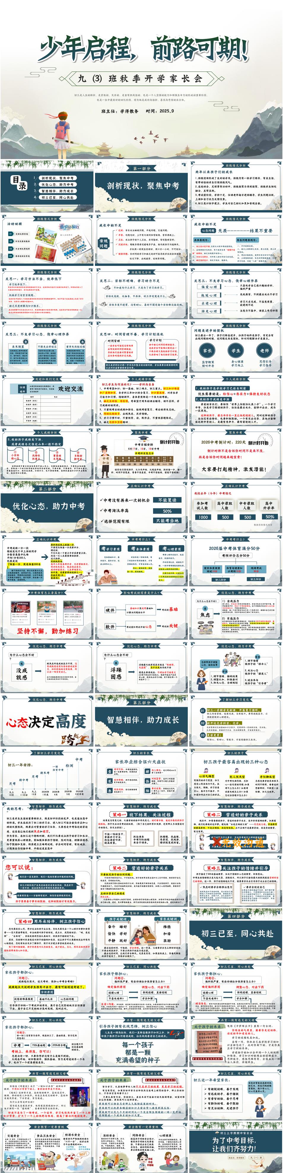 2025年秋季上学期开学初三九年级开学家长会《少年启程,前路可期》PPT课件