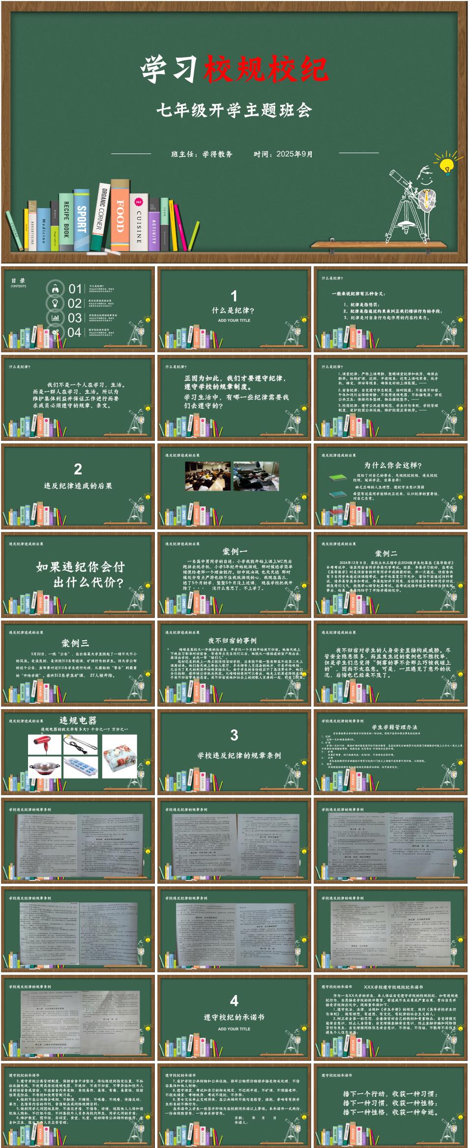 2025年秋季上学期七年级开学主题班会《学习校规校纪》PPT课件