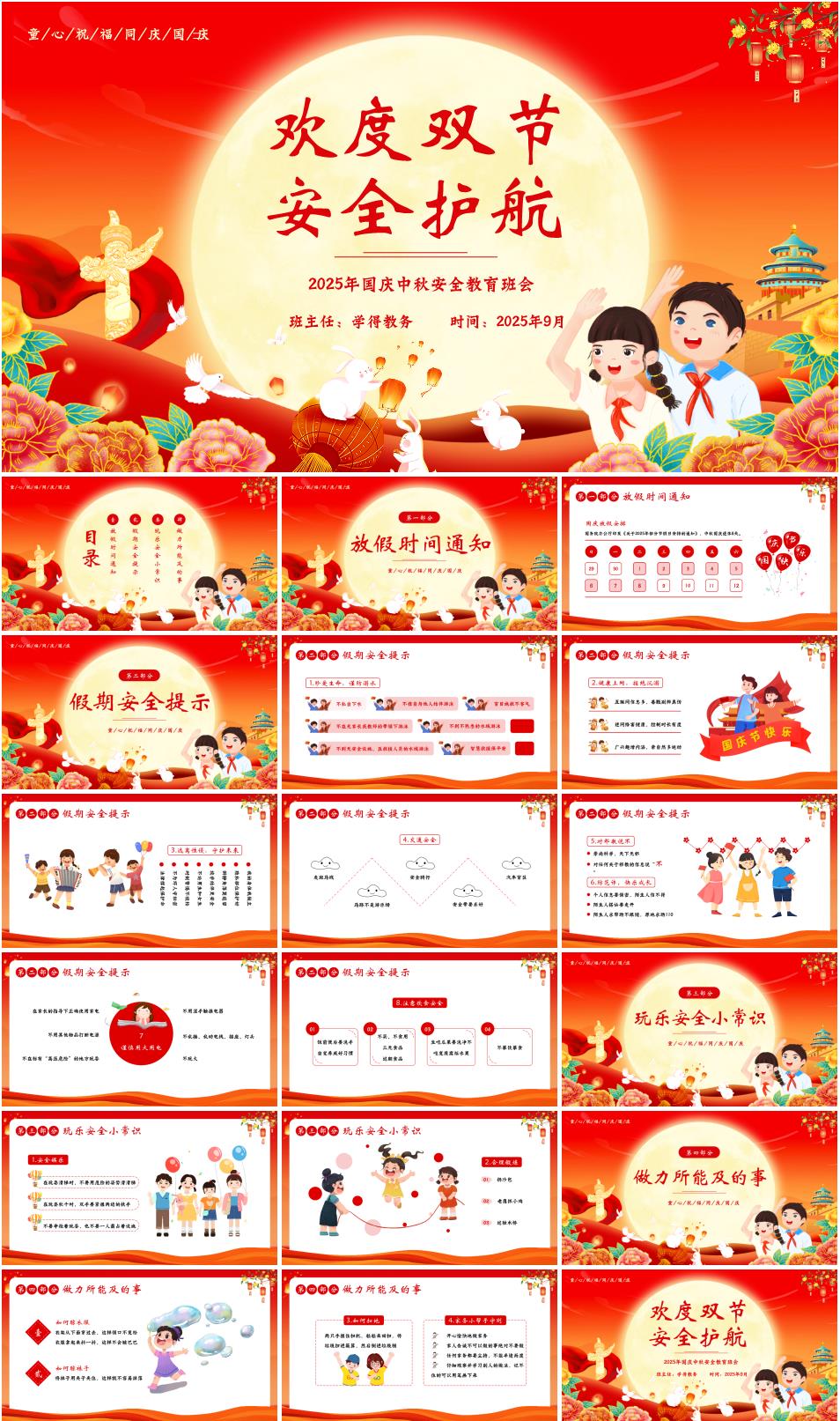 2025年中小学国庆中秋安全教育主题班会《欢度双节,安全护航》PPT课件