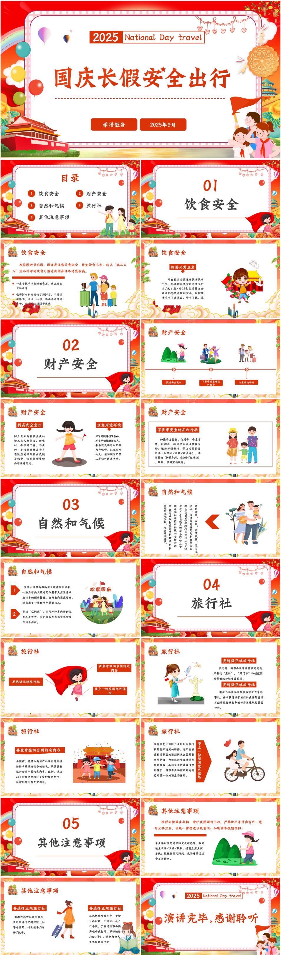 2025年小学国庆中秋假期出行安全教育主题班会《国庆长假,安全出行》PPT课件(含逐字稿)
