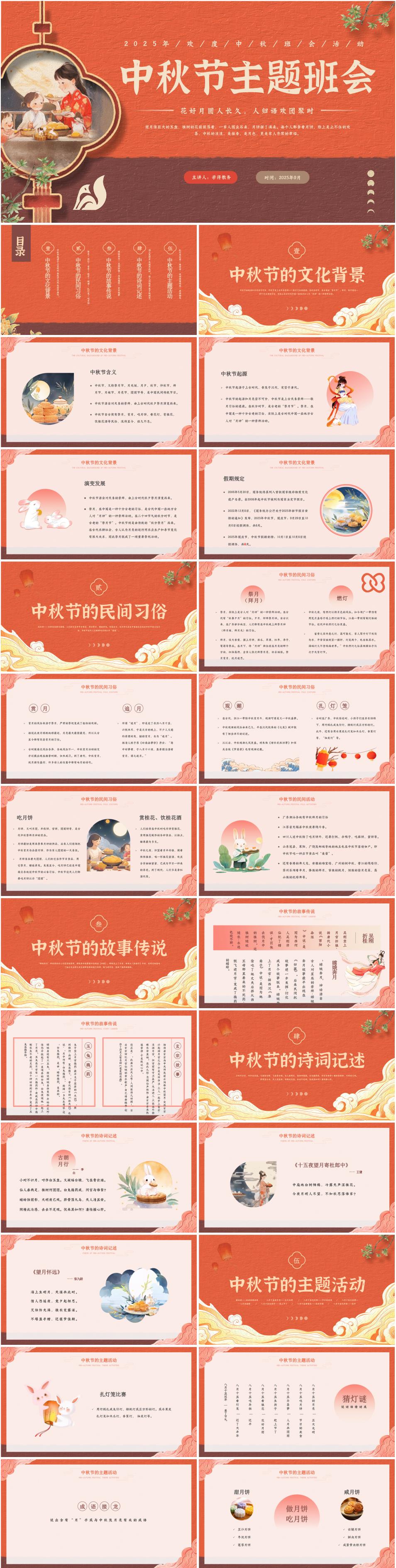 2025年中秋节主题班会《花好月圆人长久,人归语欢团聚时》PPT课件(含逐字稿)