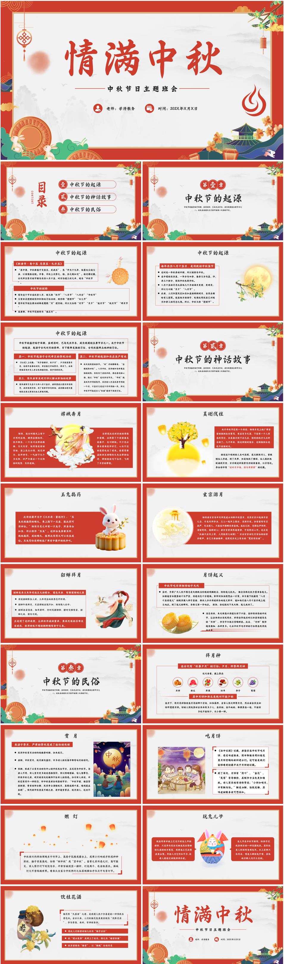 高级感满满的中秋节主题班会《情满中秋,安全相伴》PPT课件(含逐字稿)