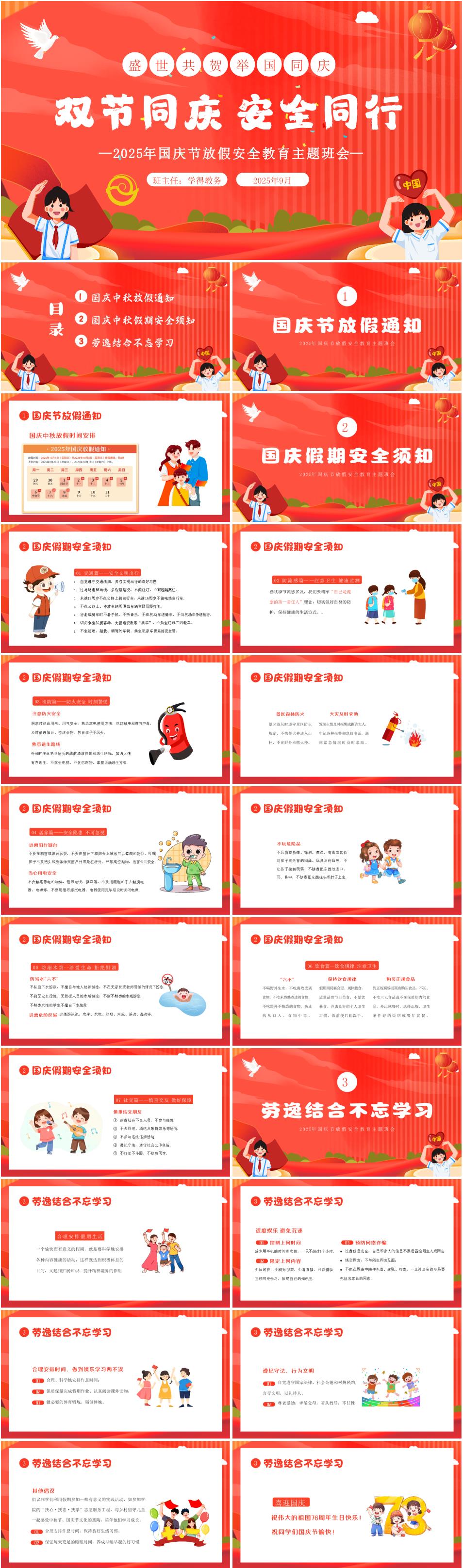 2025年小学国庆节放假安全教育主题班会《双节同庆,安全同行》PPT课件(含逐字稿)