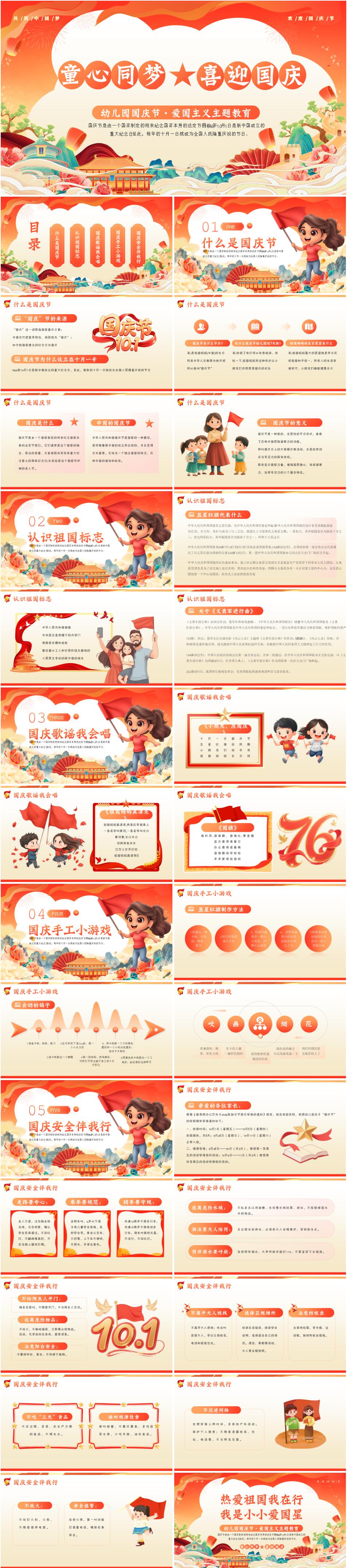 幼儿园国庆节主题班会活动《童心同梦,喜迎国庆》PPT课件(含逐字稿)