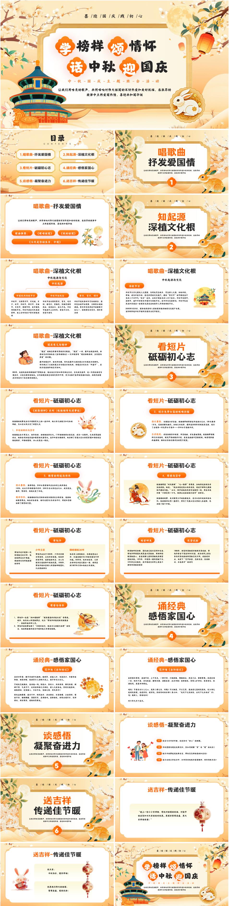 中秋国庆主题班会活动《学榜样颂情怀,话中秋迎国庆》PPT课件(含逐字稿)