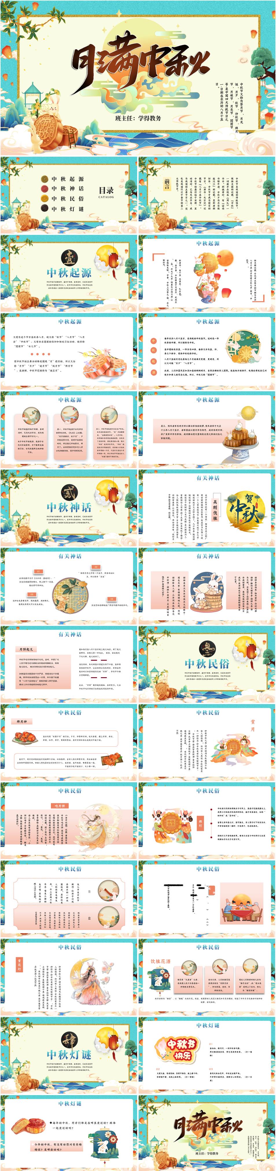中秋节主题班会《月满中秋》PPT课件(含逐字稿)
