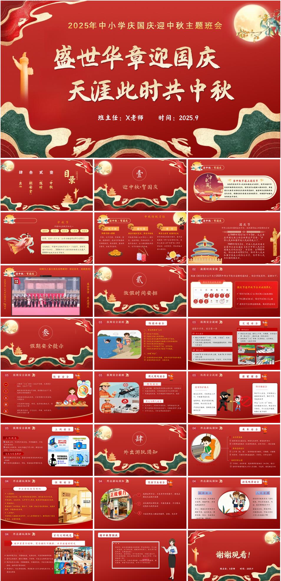 2025年中小学通用庆国庆迎中秋主题班会《盛世华章迎国庆,天涯此时共中秋》PPT课件