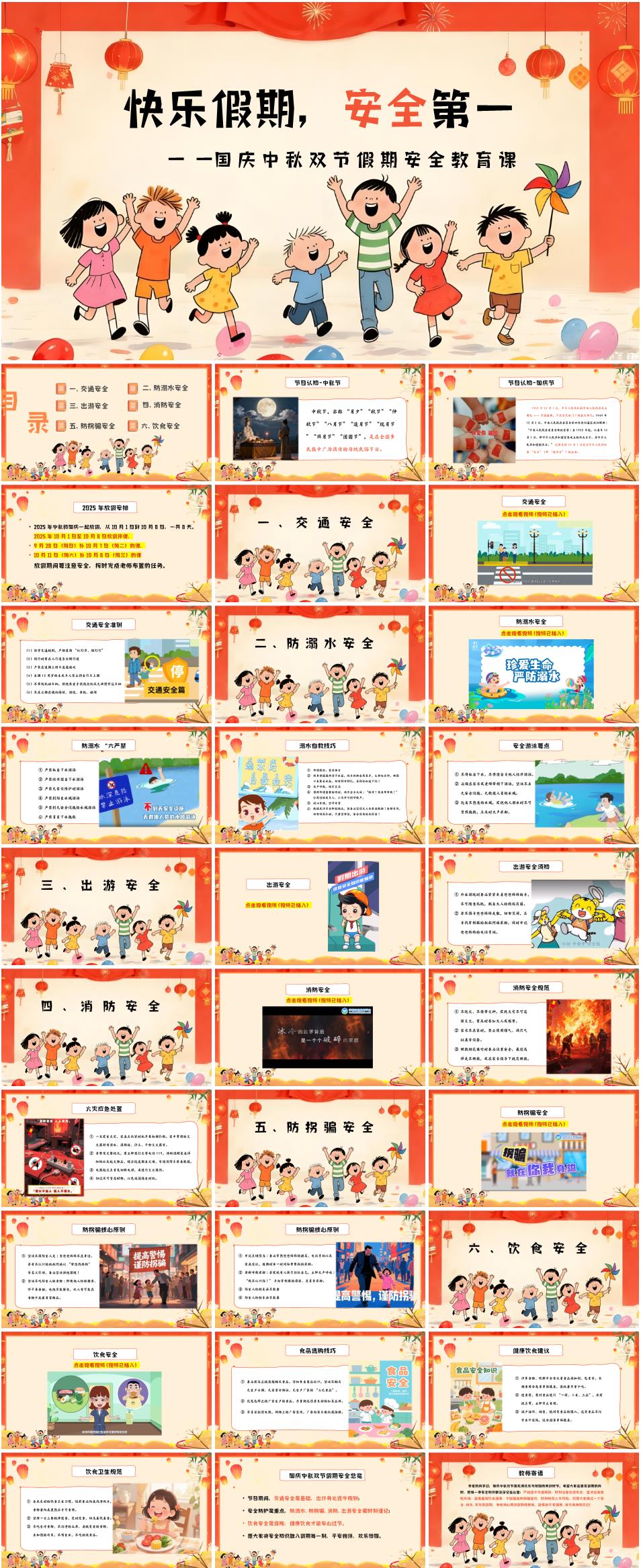 小学通用国庆中秋双节假期安全教育主题班会《快乐假期,安全第一》PPT课件(含教案讲稿)