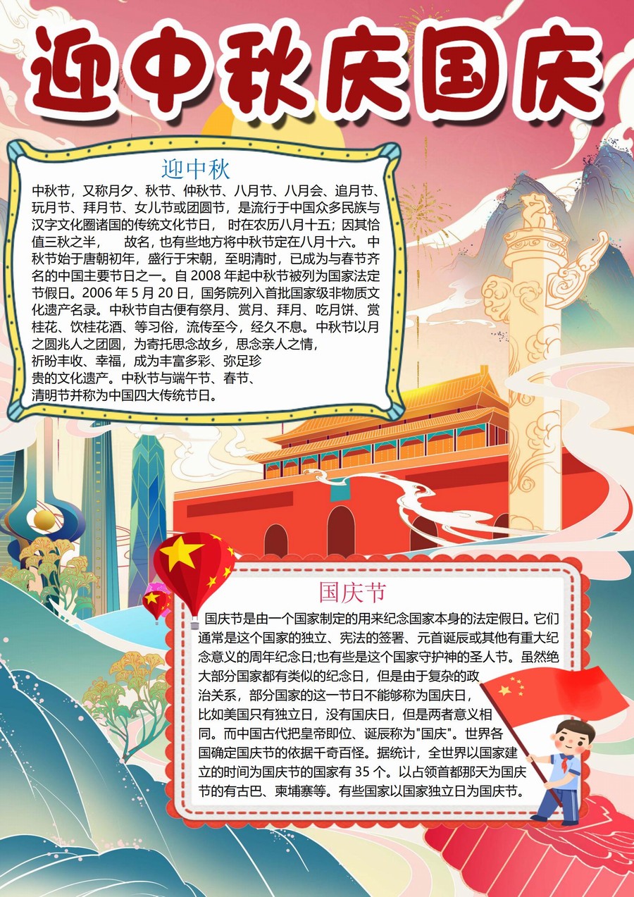 中秋国庆手抄报《迎中秋庆国庆》word版