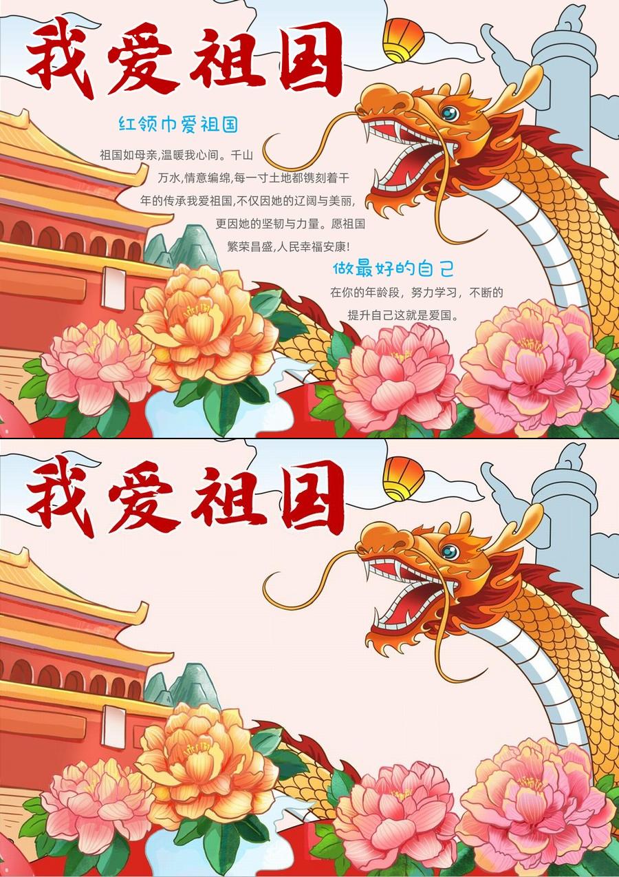 国庆节手抄报《我爱祖国》word模板
