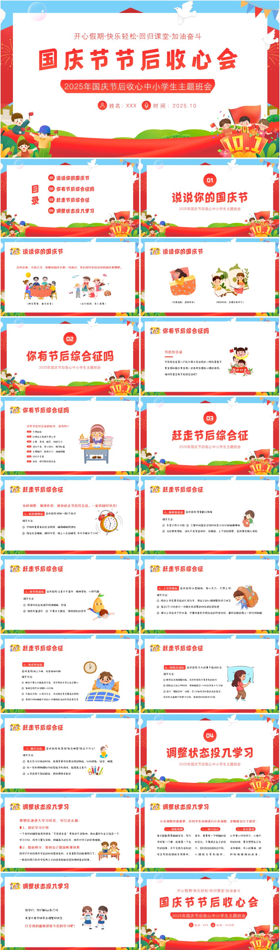 2025年中小学生国庆节后收心主题班会PPT课件