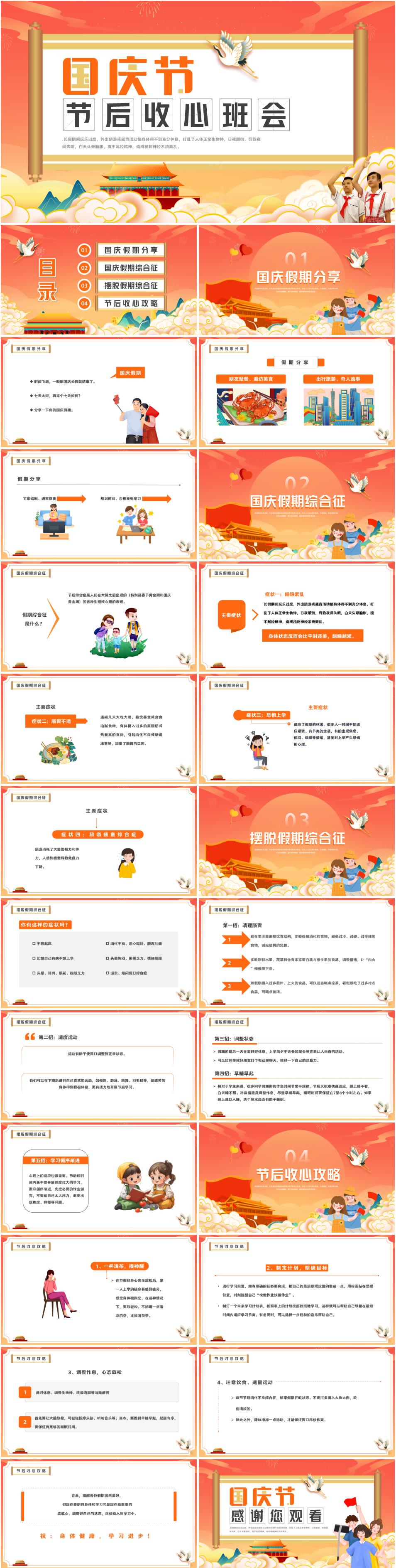 2025年中小学通用国庆节节后收心主题班会PPT课件