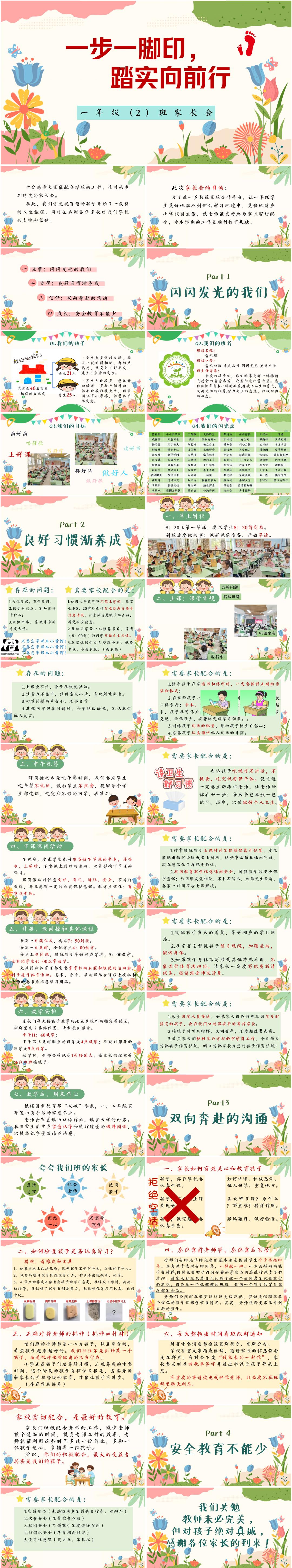 小学一年级上学期家长会《一步一脚印,踏实向前行》PPT课件(含发言稿)