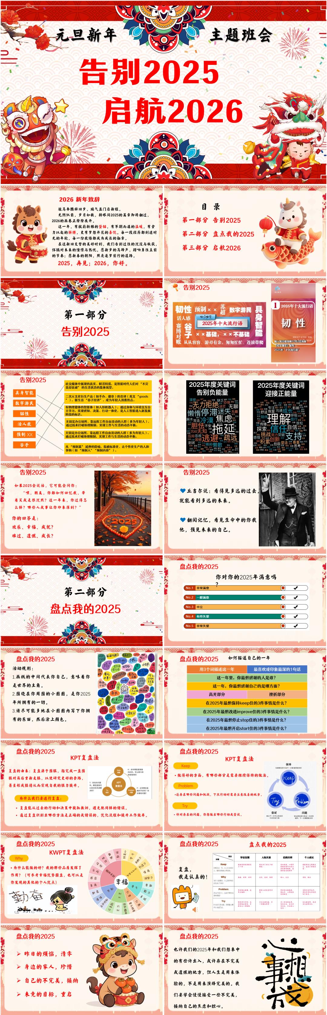 初高中通用2026马年元旦新年主题班会PPT课件《告别2025,启航2026》(含发言稿)