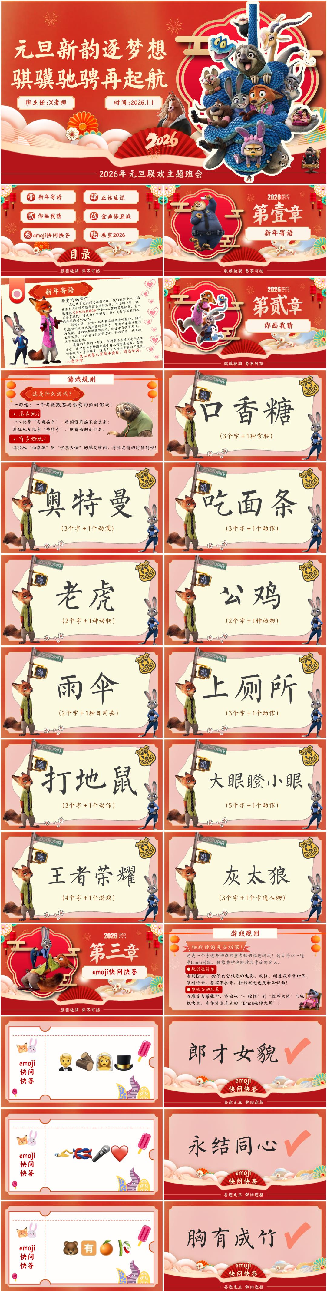 【通用】2026元旦主题联欢班会PPT《元旦新韵逐梦想,骐骥驰骋再起航》(疯狂动物城版)