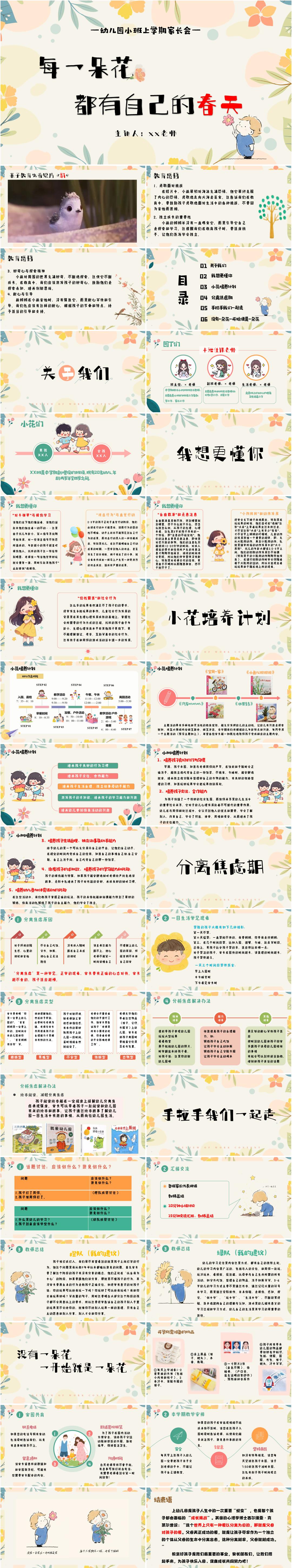 幼儿园小班秋季上学期家长会PPT课件《每一朵花,都有自己的春天》(含发言稿)