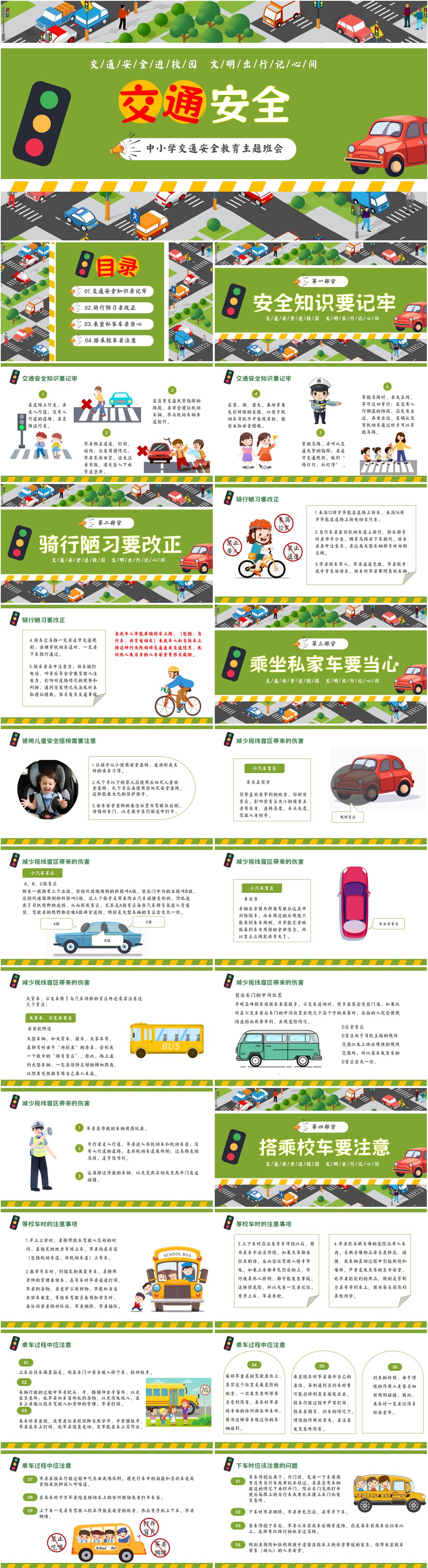中小学交通安全教育主题班会PPT课件《交通安全进校园,文明出行记心间》(含发言稿)