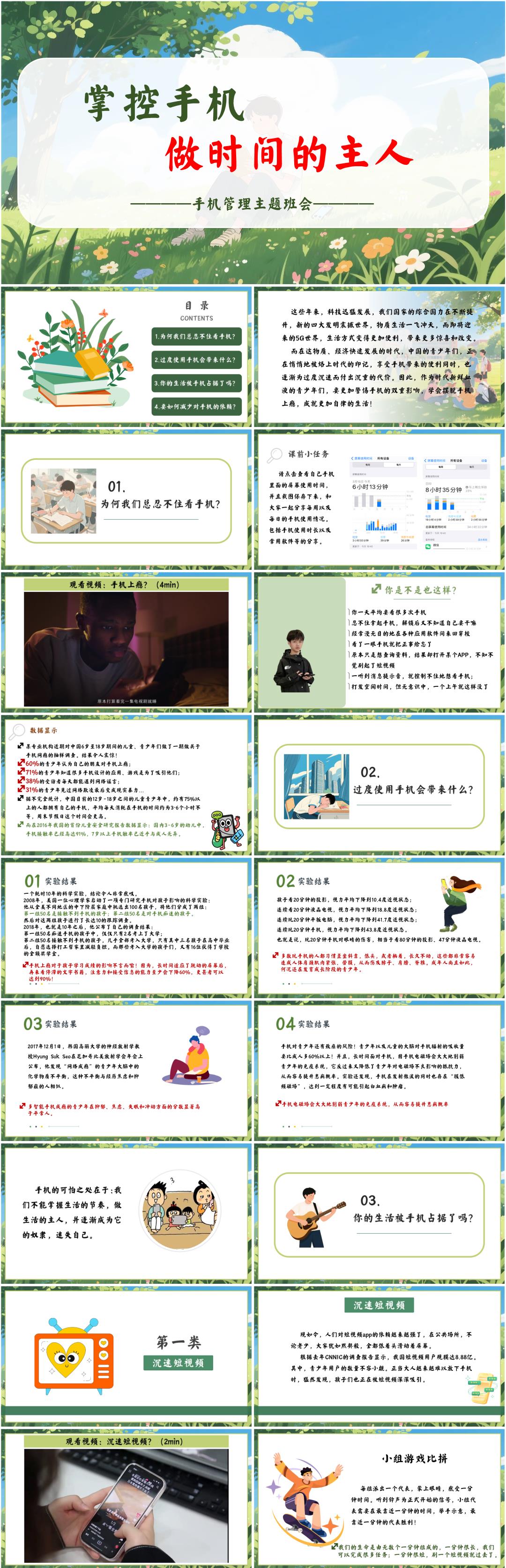 初高中通用手机管理主题班会PPT课件《掌控手机,做时间的主人》(含配套教案+视频)