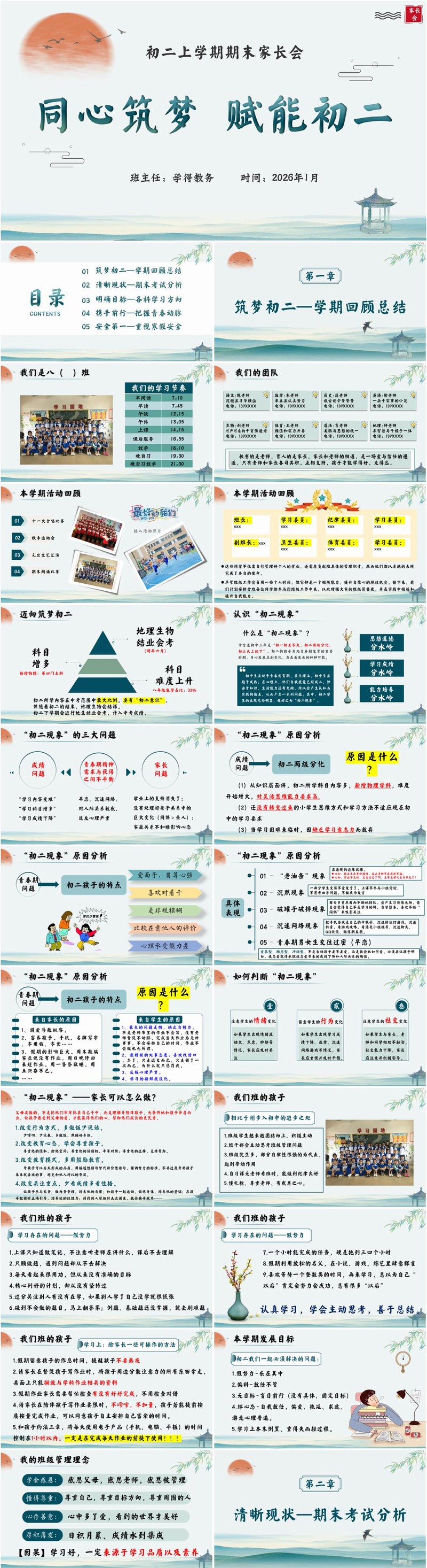 初二八年级上学期期末家长会PPT课件《同心筑梦 赋能初二》(含发言稿)