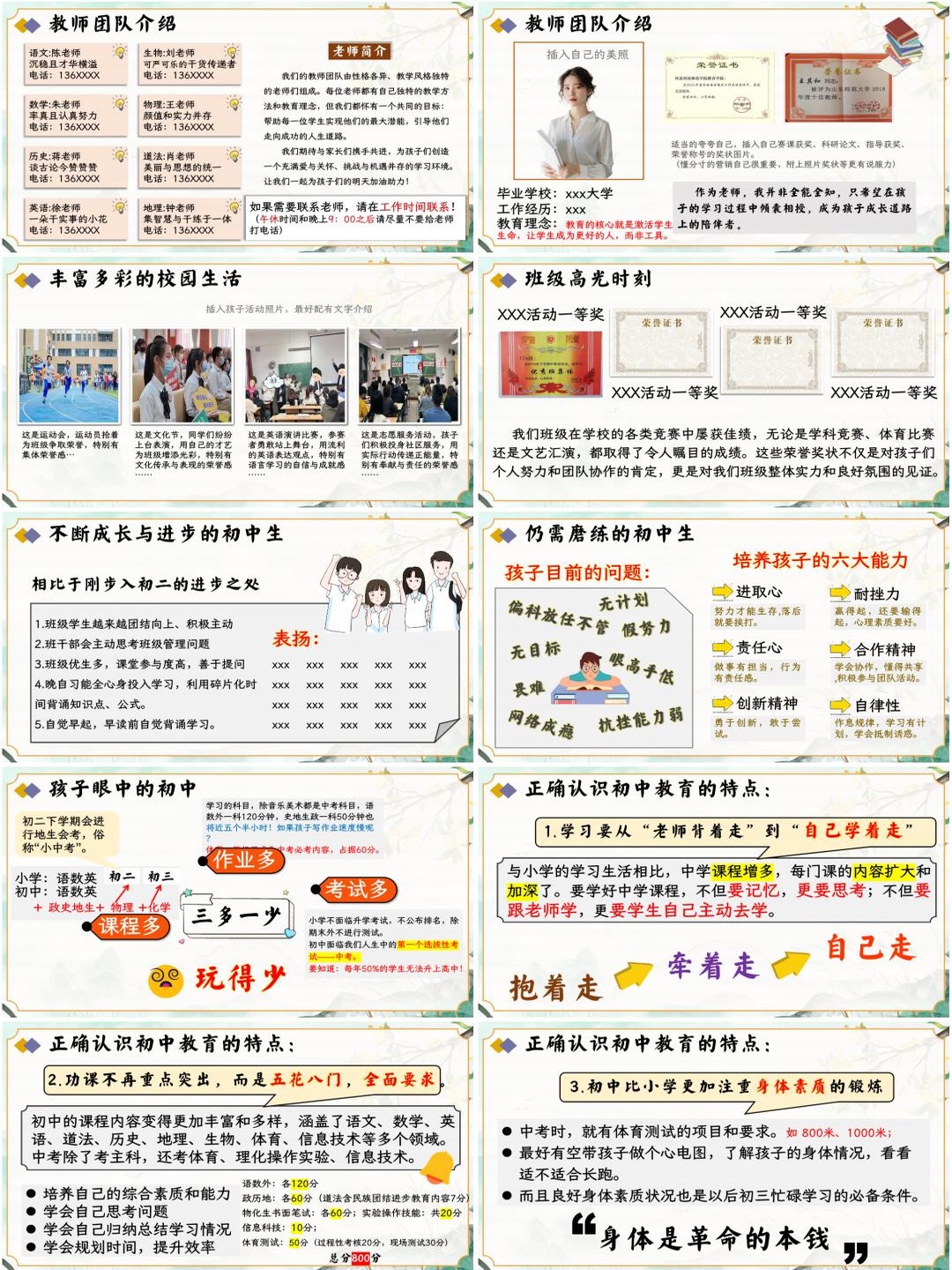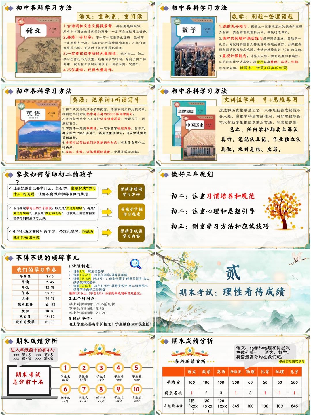 初二八年级上学期期末家长会PPT课件《耕耘在初二,成长皆可期》(含发言稿)