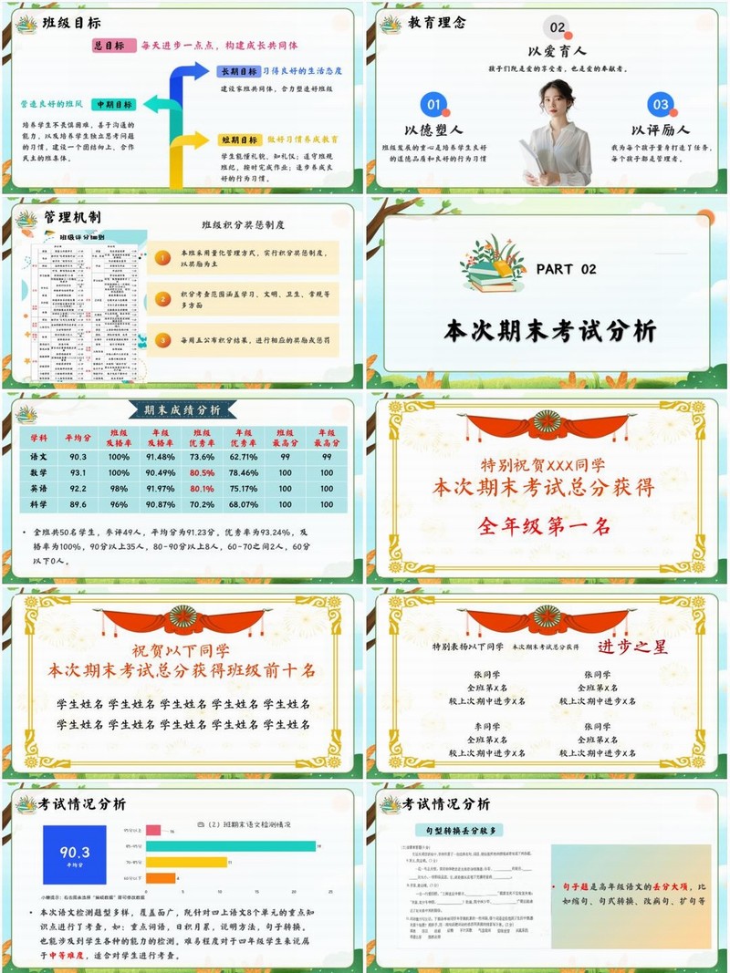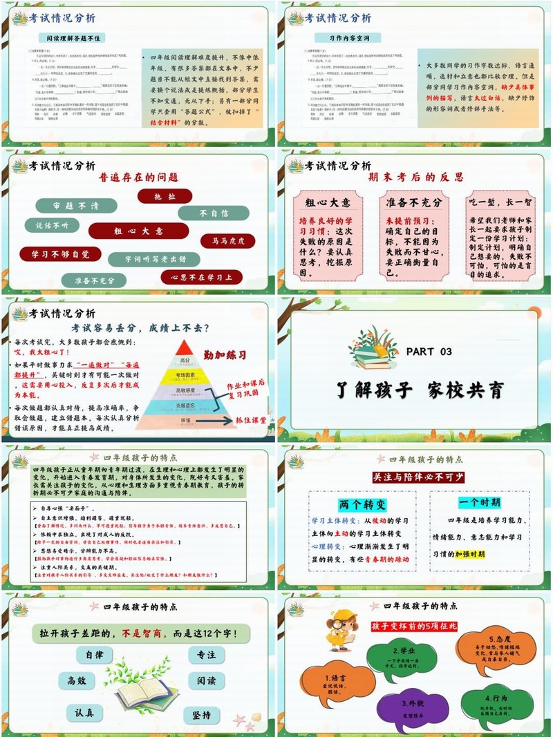 小学四年级上学期期末语文家长会PPT课件《“四”季共筑梦 家校同向前》(含发言稿)