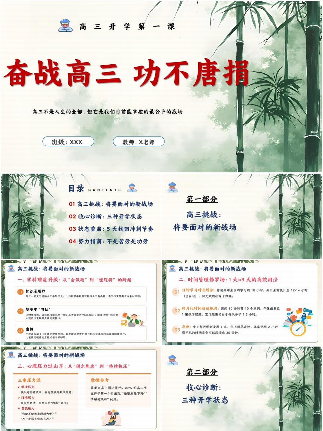 高三开学第一课学习指导励志主题班会PPT课件《奋战高三,功不唐捐》(含教案)