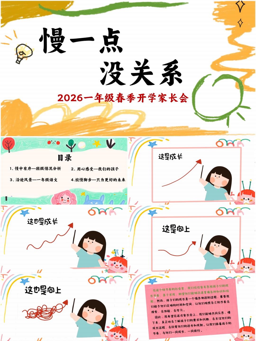 一年级下学期第二学期开学家长会语文开学家长会PPT课件《慢一点,没关系》(含发言稿)